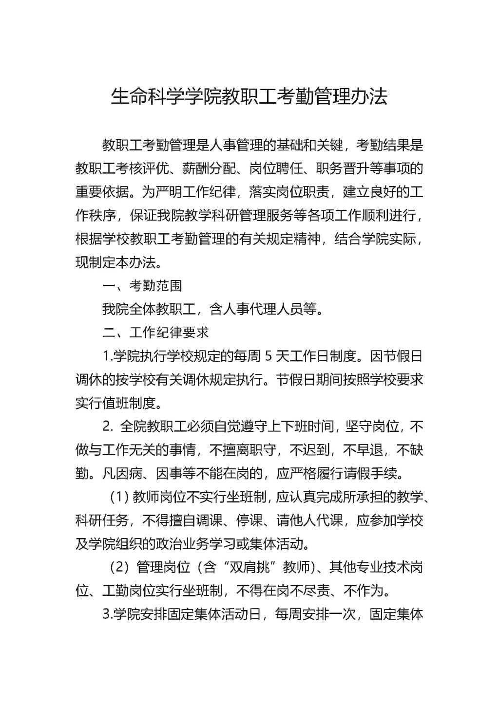 今日看料 教职工考勤管理办法