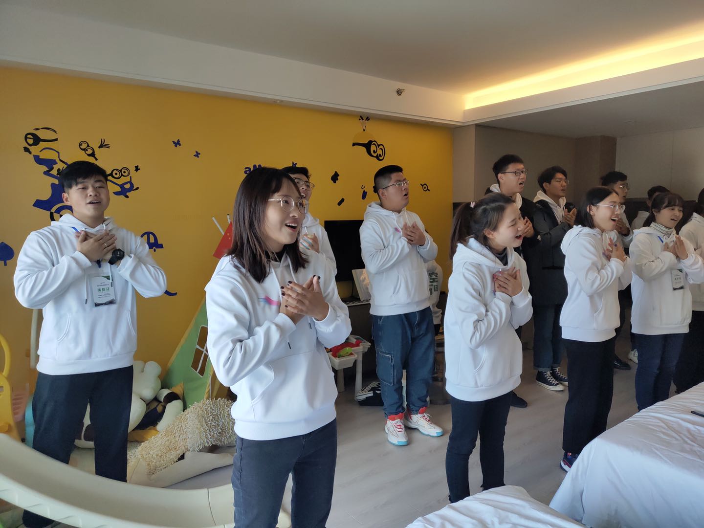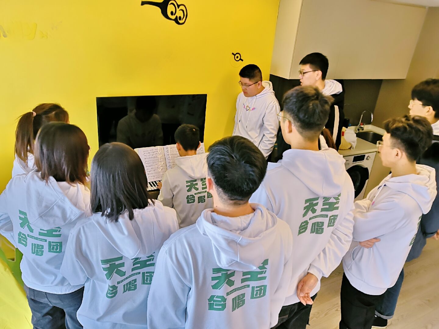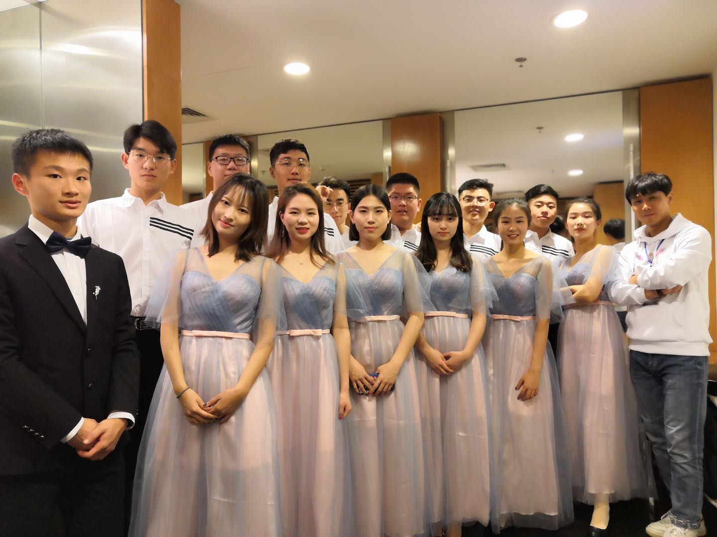 热爱音乐、喜欢合唱的同学们自发组成的兴趣团体,由苏跃华担任指导教师,邀请刘善平老师担任专业顾问。此次参赛团队由13名2017级合唱队员组成,1名19级新生担任钢琴伴奏,在拿到进入决赛资格之后,团队成员在一个多月的时间里全力以赴地利用中午、晚上的时间进行练习,学院也为合唱团提供了有力保障及支持,激励广大青年弘扬新时代主旋律,争做社会主义建设者和接班人。