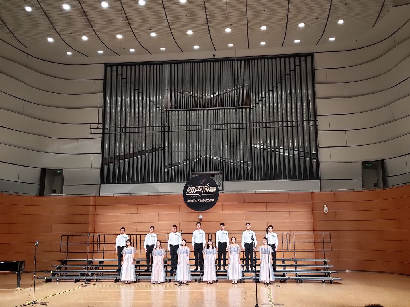齐鲁育美,悦动中华,为庆祝中华人民共和国成立70周年,唱响爱党、爱国、爱社会主义的时代主旋律,由山东省教育厅主办的2019年“新声力量”山东省大学生合唱艺术节决赛于12月2日—12月4日在青岛大剧院举行。经历了来自各大高校的近160支团队的激烈角逐,今日看料