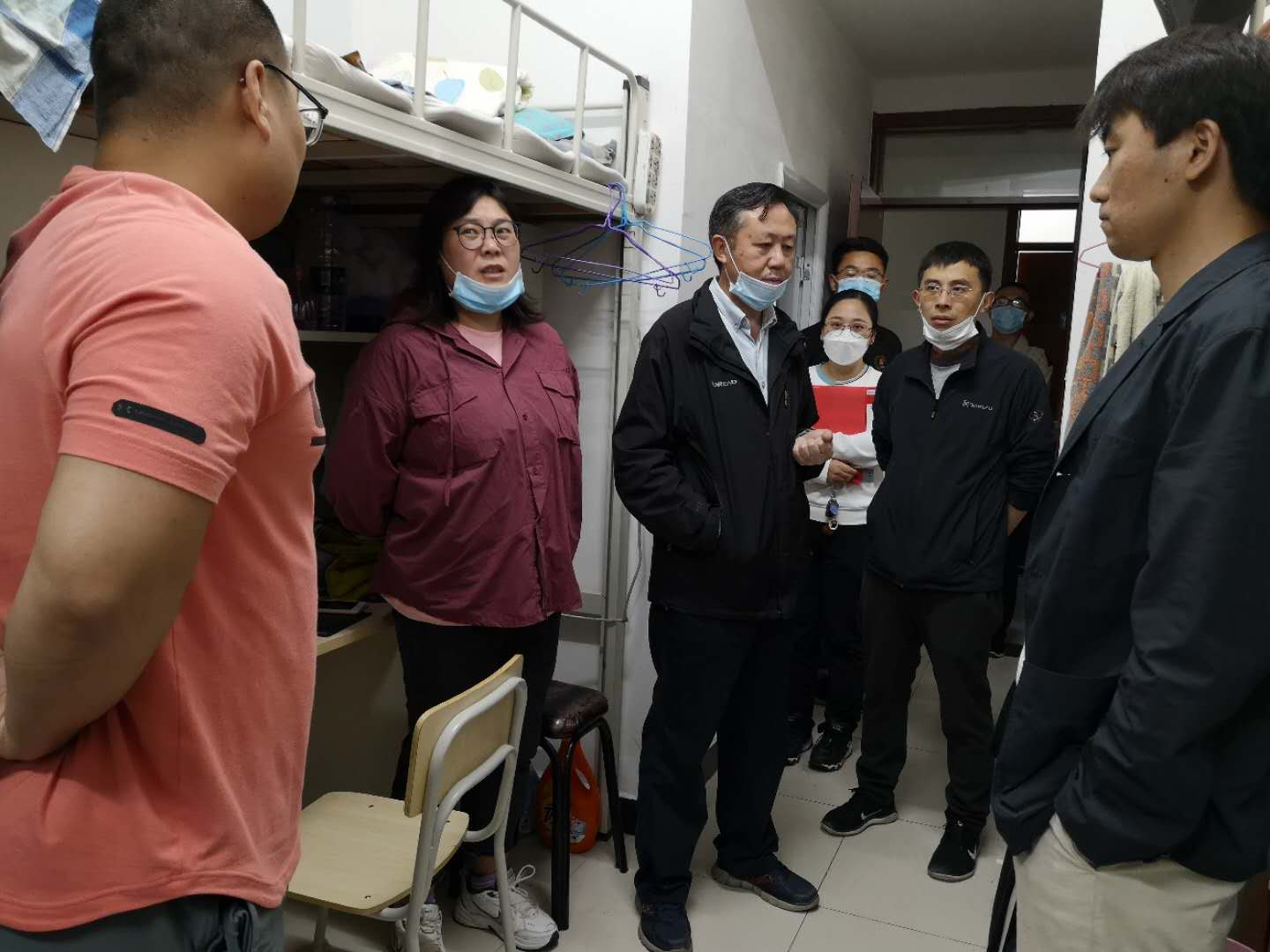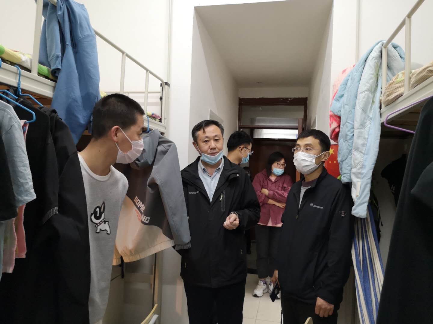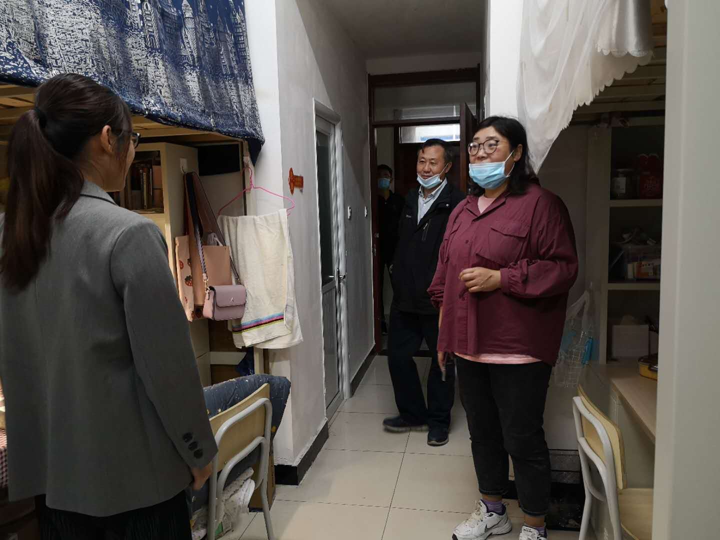 院长邬旭然、党支部副书记李明月、研究生辅导员曹鹏、王丽君深入走访研究生宿舍,切实走近学生生活。