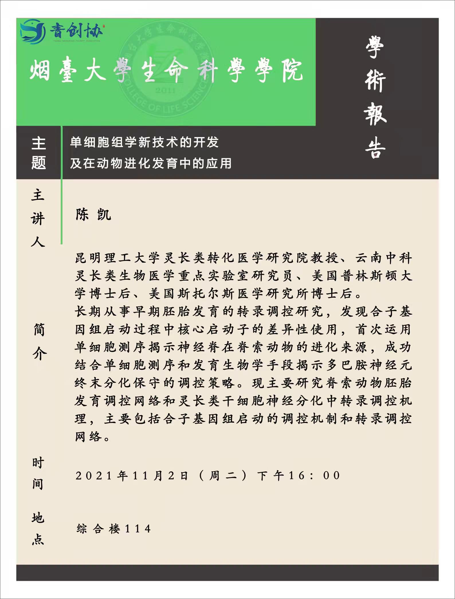 学术报告预告-单细胞组学新技术的开发及在动物进化发育中的应用