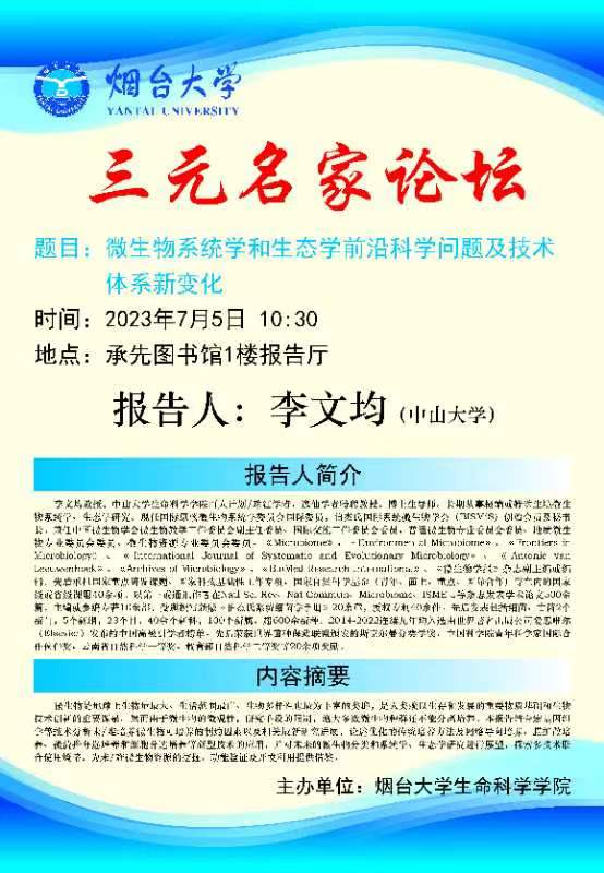 学术报告预告-微生物系统学和生态学前沿科学问题及技术体系新变化