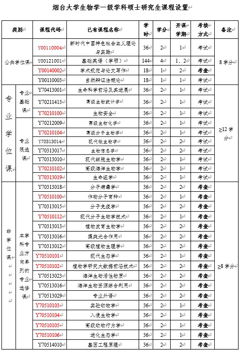 生物学硕士研究生课程设置》(附后)